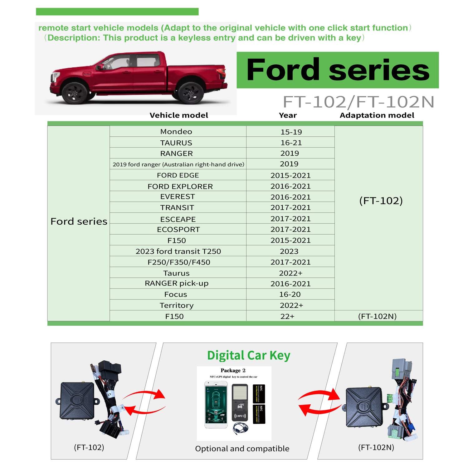 1、This product is only suitable for cars with push start button in the above list car models . Before ordering,pls tell us your car brand,year,key start or button start,we need to confirm whether your car can install our product, it is very important. If you don't confirm, we can't send you goods.